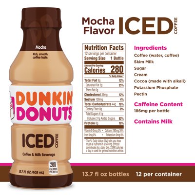 They will be available in the refrigerated section of grocery, convenient, and dunkin' donuts stores nationwide. Name a more iconic duo. Contactless delivery and your first delivery is free! February 22nd 2021, 6:26 am. Dunkin' donuts bottled iced coffee is available in four delicious flavors, including mocha, french vanilla, original and espresso. Caffeine values can vary greatly based on the variety of coffee/tea and the brewing equipment/steeping method used. 4.8 out of 5 stars. 4.4 out of 5 stars with 23 ratings. Dunkin' donuts bottled ice coffee 12 pack (espresso) 4.6 out of 5 stars. This is just about 8 mg more than what. Through an agreement announced last september, the. These are popular grocery store grabs for my teenager. Starbucks doubleshot, espresso + cream, 6.5 ounce, 12 pack.
